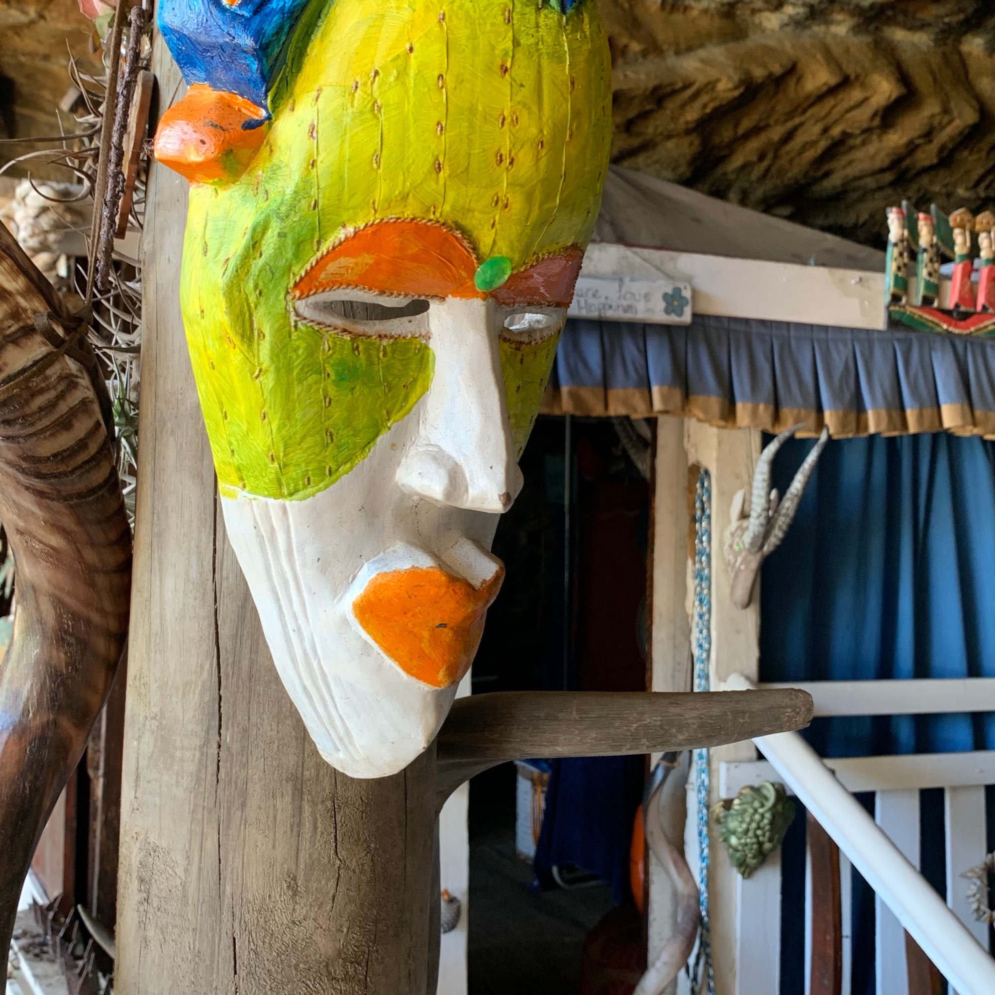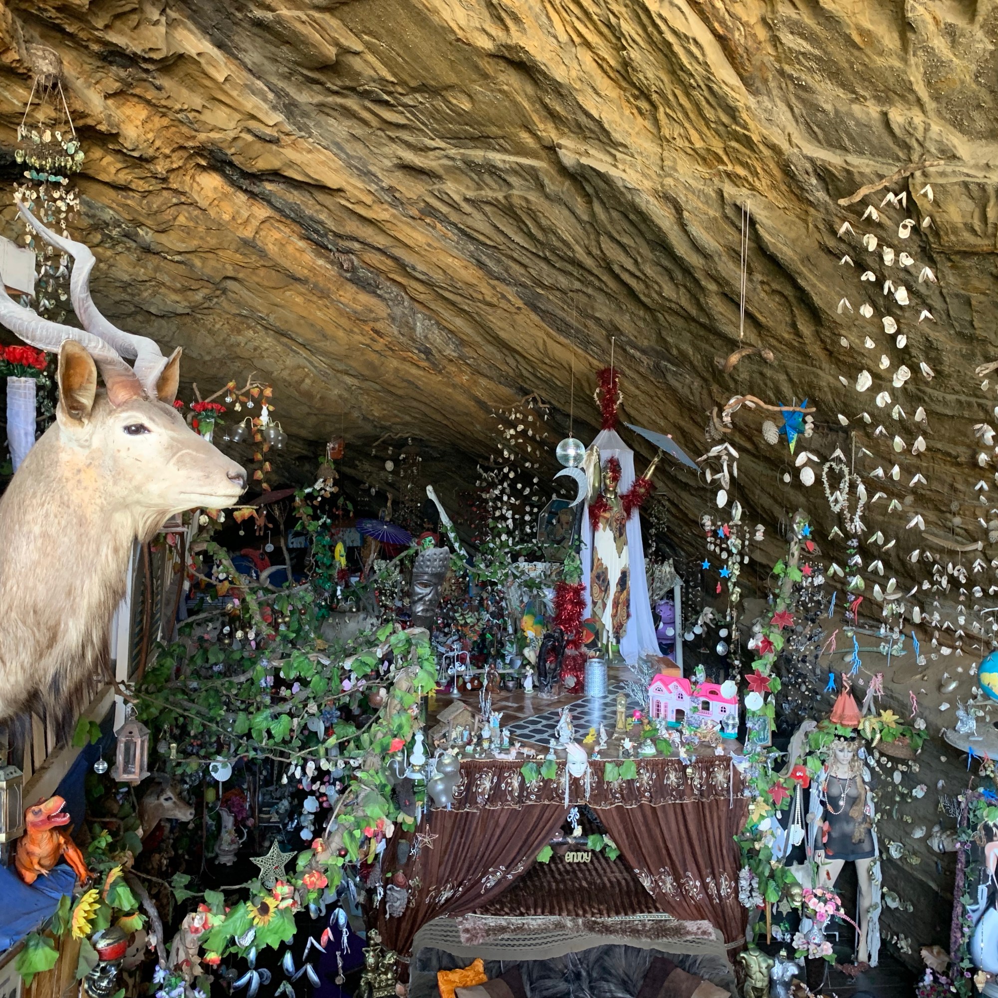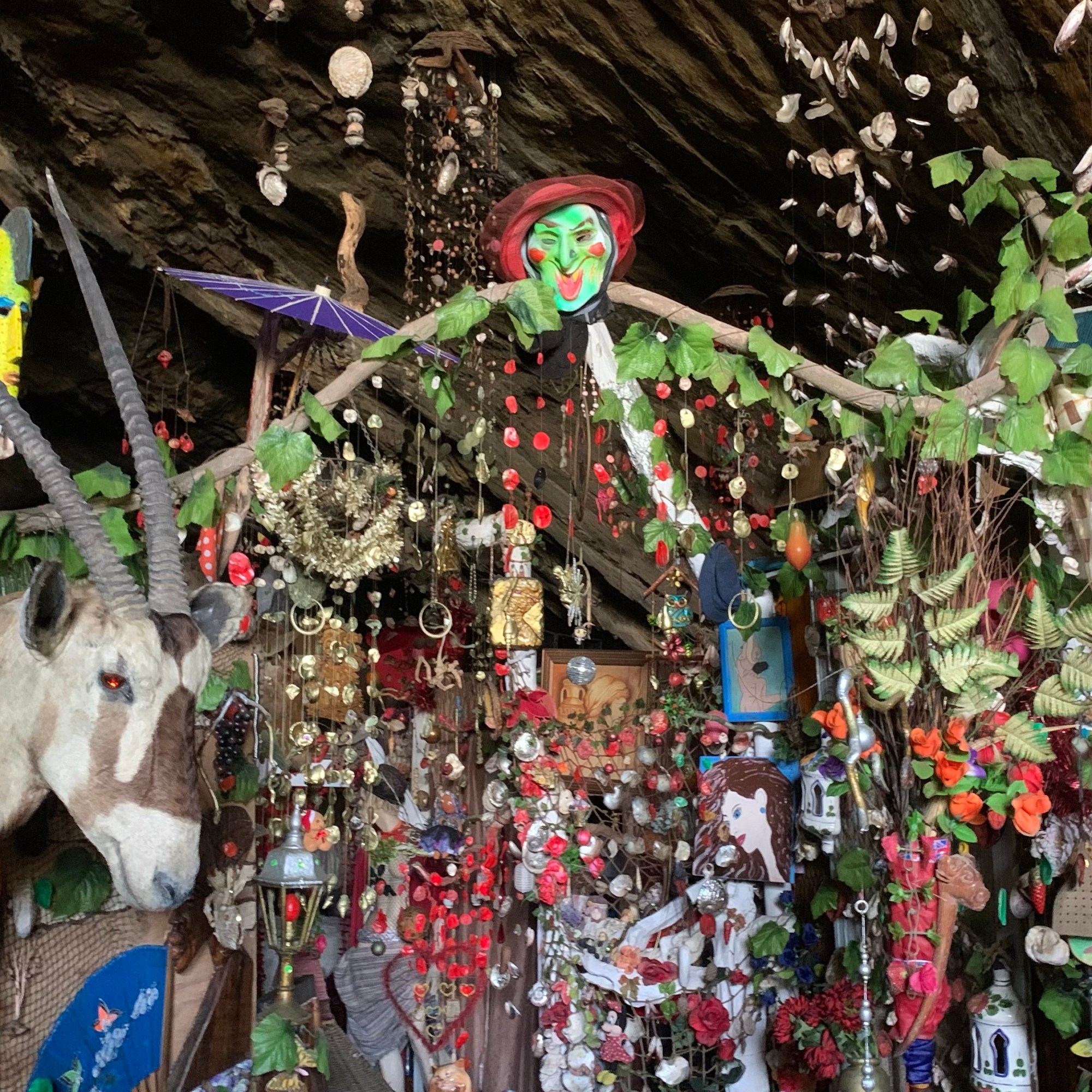 Aber er ist nicht der einzige Bewohner hier. Cliffords Lebensmotto besteht darin, obdachlosen Menschen oder anderen Bedürftigen ein Dach über dem Kopf zu bieten. Und deshalb gibt es insgesamt 14 Schlafplätze in der Höhle, die bei Bedarf auch an Touristen vermietet werden. Es gibt zwar keinen Strom in der Höhle, aber Wasser und Abwasser funktionieren. Clifford und seine Mitbewohner haben über die Jahre die Höhle mit allerlei Fundstücken, selbst hergestellter Deko und vor allem Muschelketten geschmückt und einzelne Bereiche nach bestimmten Mottos hergerichtet. Selten findet man eine mit so viel Hingabe gestaltete Unterkunft mit recht puristischer Ausstattung. Die Fotos aus der Höhle sprechen vermutlich für sich …