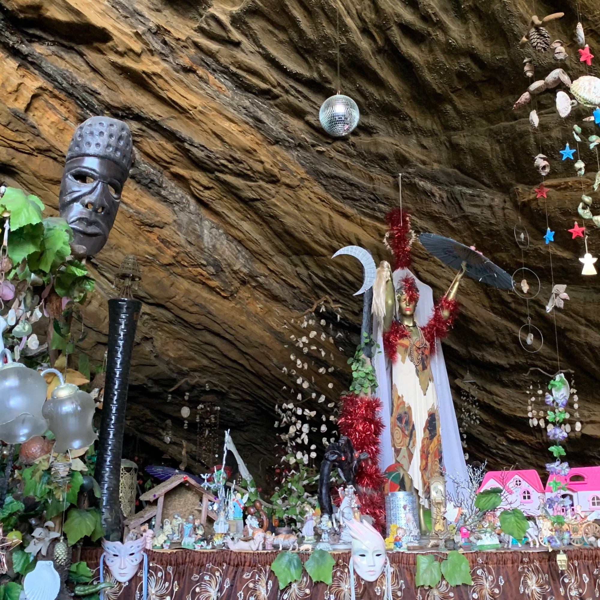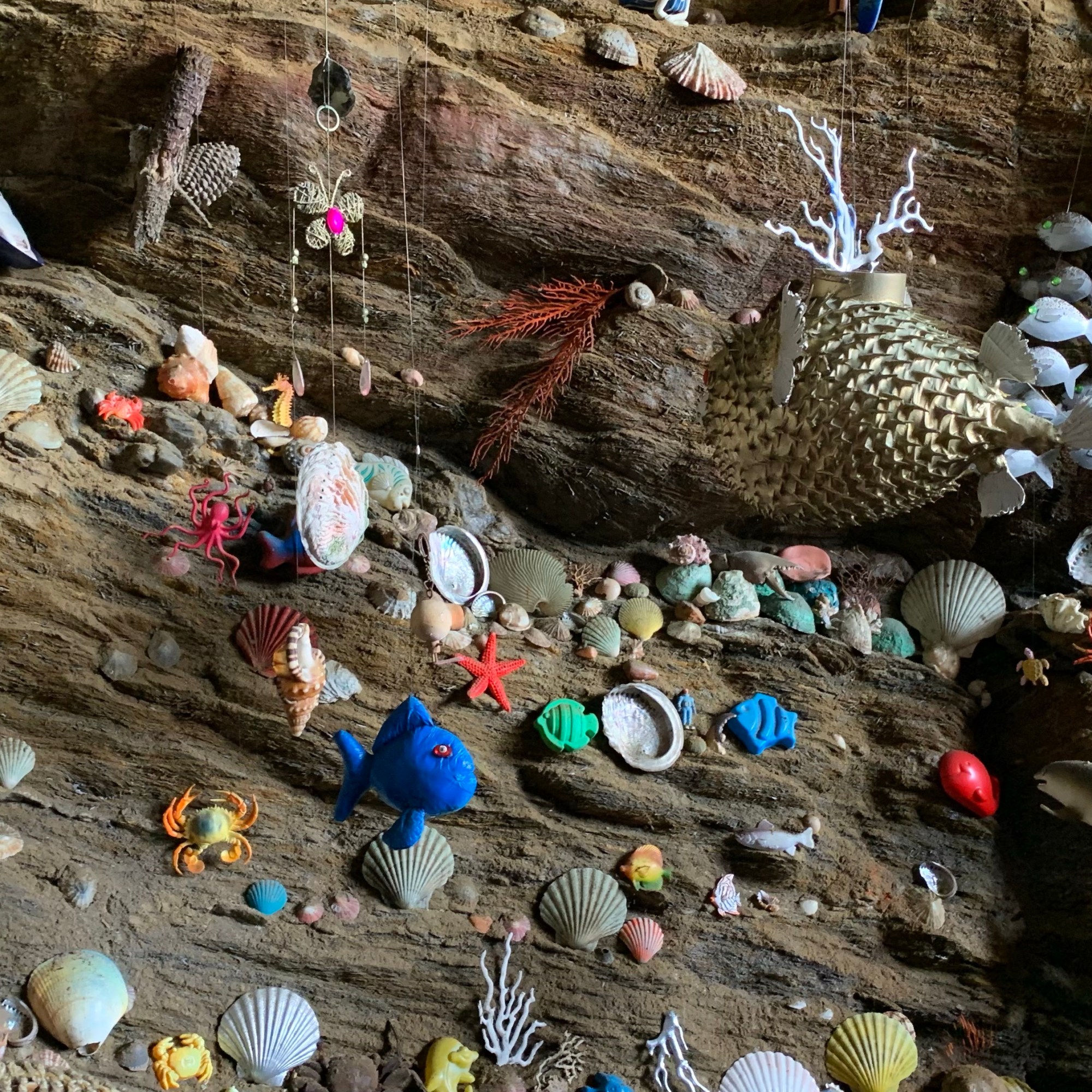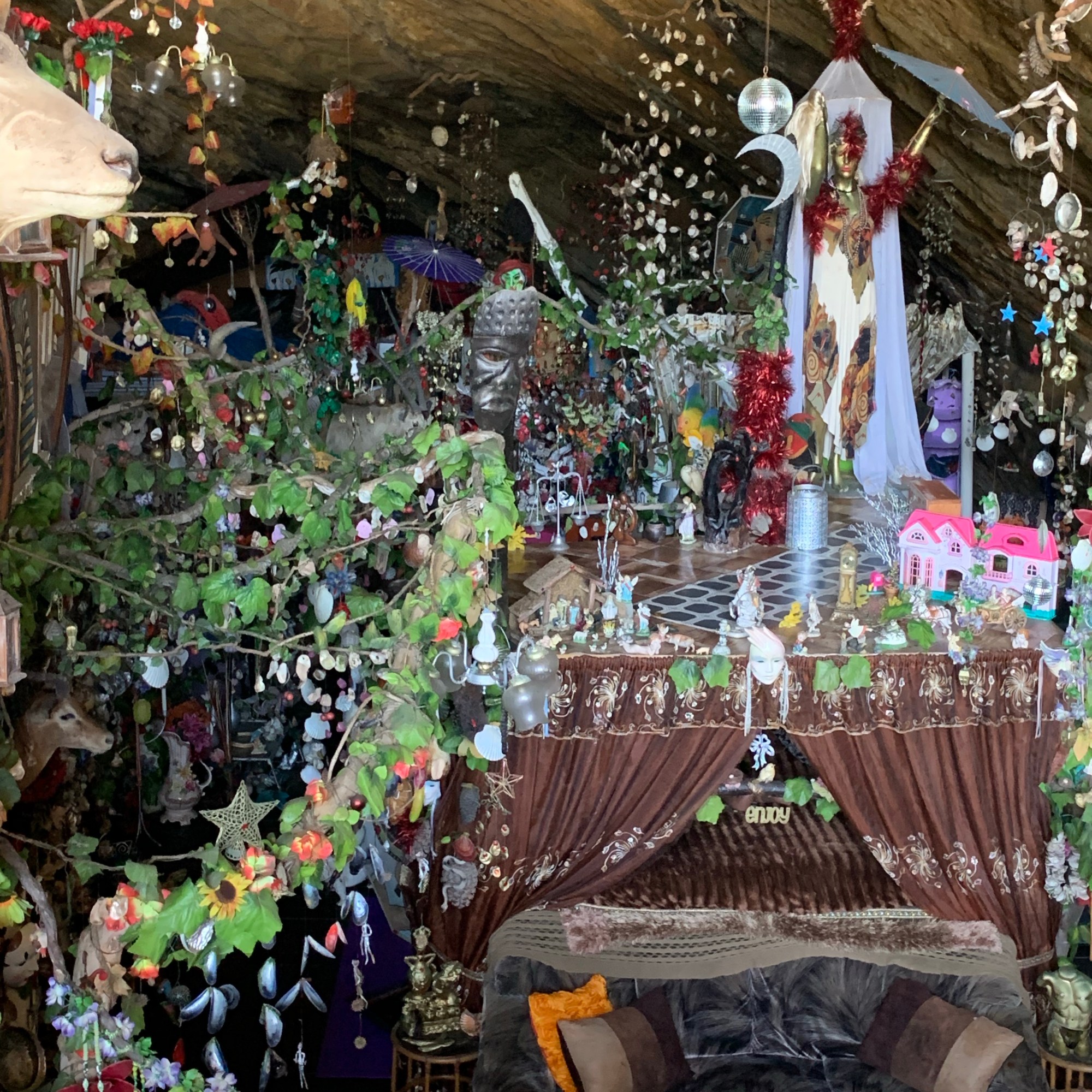 Aber er ist nicht der einzige Bewohner hier. Cliffords Lebensmotto besteht darin, obdachlosen Menschen oder anderen Bedürftigen ein Dach über dem Kopf zu bieten. Und deshalb gibt es insgesamt 14 Schlafplätze in der Höhle, die bei Bedarf auch an Touristen vermietet werden. Es gibt zwar keinen Strom in der Höhle, aber Wasser und Abwasser funktionieren. Clifford und seine Mitbewohner haben über die Jahre die Höhle mit allerlei Fundstücken, selbst hergestellter Deko und vor allem Muschelketten geschmückt und einzelne Bereiche nach bestimmten Mottos hergerichtet. Selten findet man eine mit so viel Hingabe gestaltete Unterkunft mit recht puristischer Ausstattung. Die Fotos aus der Höhle sprechen vermutlich für sich …