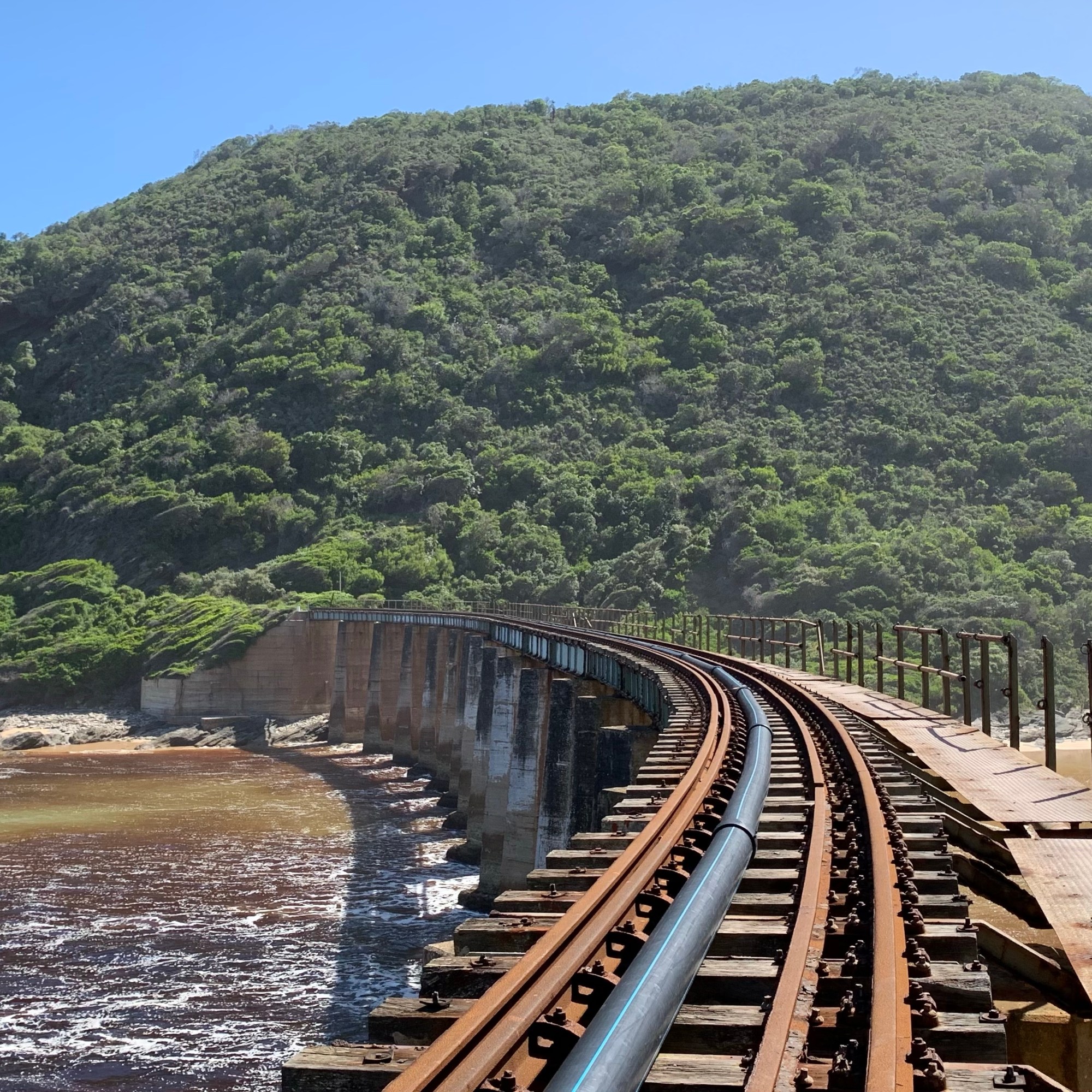 Die früher 68 Kilometer lange Bahnstrecke verband die Städte George und Knysna und war die letzte Strecke in Südafrika, auf der eine Dampflok fuhr, die Outeniqua Choo-Tjoe. Die Gemeinde Wilderness ist sehr bemüht, den Schutz der Mündung und die gesamte Region des Kaimaan Rivers sicherzustellen. Ende 2021 gelang es, die Eisenbahnbrücke tatsächlich auch formell als nationales Kulturgut unter Schutz zu stellen. Eine Restaurierung der Brücke oder gar die Inbetriebnahme der Eisenbahnlinie scheitert vermutlich aber an den fehlenden Finanzen.