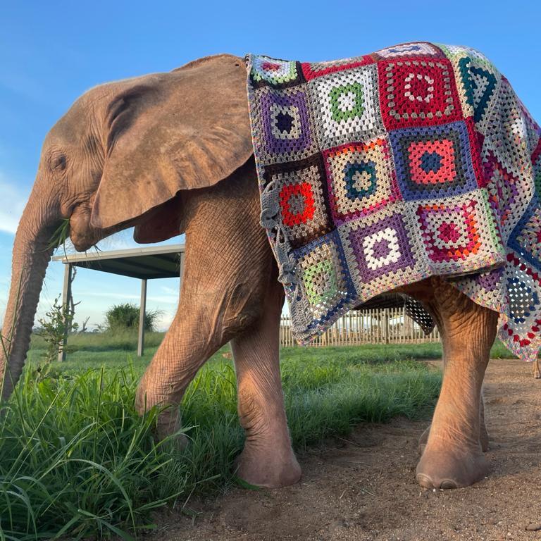 In unserer aufgeklärten Gesellschaft fragt man sich natürlich, warum Nashörner nach wie vor gejagt und abgeschlachtet werden? Denn international ist der Handel mit Horn verboten. Das Horn soll angeblich – nach Meinung vor allem asiatischer Länder – so einige Zauberkräfte enthalten. Fein gemahlen und eingenommen soll es Krebs heilen, die Potenz steigern und noch vieles mehr. Wer dies glaubt, sollte sich am besten von Fingernägeln ernähren, denn aus nichts anderem besteht das Horn der Rhinos. Wissenschaftlich bewiesen hat das Horn keine der gewünschten Wirkungen und ist damit nichts anderes als purer Hokuspokus. Was wirklich dahinter steckt sind wirtschaftliche Interessen der Wilderer-Mafia. Ein Kilogramm Horn bringt auf dem Markt bis zu 60.000 Dollar, also deutlich mehr als Gold. Dafür müssen jährlich hunderte Tiere auf grausame Art und Weise ihr Leben lassen. Muttertiere werden abgeschlachtet, die Mini-Nashörner bleiben allein bei ihrer toten Mutter, bis sie selbst vor Durst sterben oder von Hyänen gefressen werden. Mittlerweile hat sich eine Waisenhaus-Struktur entwickelt, in die die kleinen Rhinos gebracht werden – wenn man sie denn rechtzeitig findet. Und dann bekommen sie dort unsere Häkeldecken, denn die sind bunt, halten warm und tragen zum Wohlbefinden der Baby-Nashörner bei. Werden auch gern mal von kleinen Elefanten genutzt – Khanyisa von HERD – Hoedspruit Elephant Rehabilitation and Development trägt meine Decke, die ich schon 2017 mit hierher gebracht hatte!
