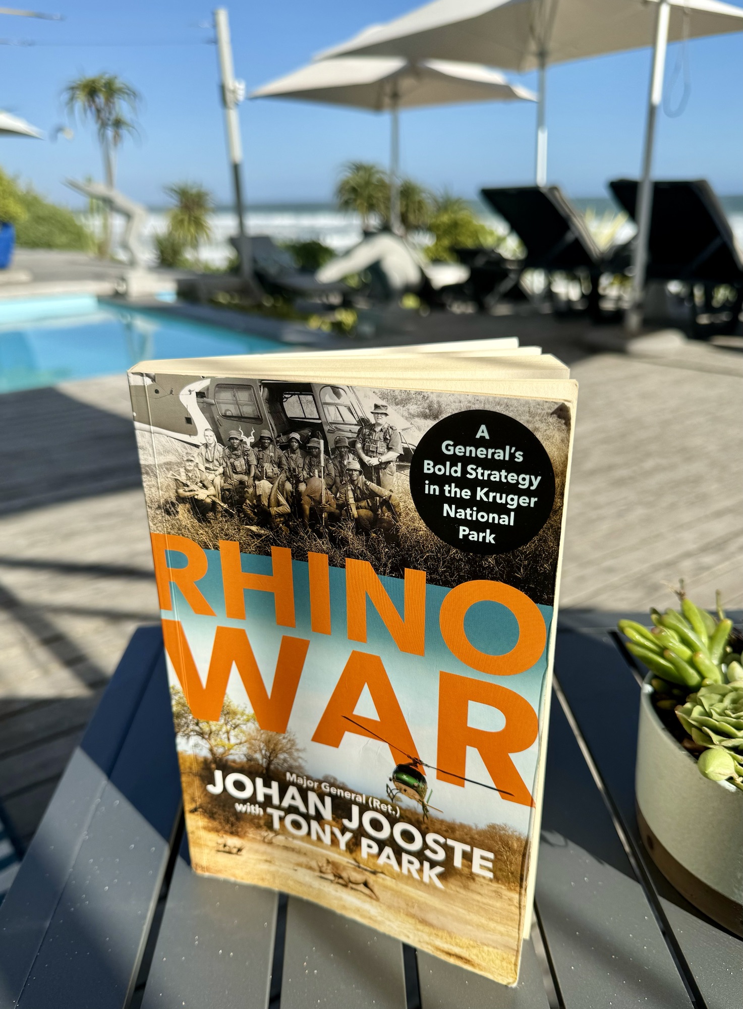 In diesem Jahr gab mir Rick, unser Gastgeber aus Bloubergstrand, ein Buch mit auf die Reise, so ein richtiges zum Anfassen und Blättern. Er selbst hatte es vor einiger Zeit gelesen und meinte nach einem Gespräch über unsere Versand-Aktion der Häkeldecken für die Baby-Nashörner, dass mich dieses Buch sicher interessieren würde. Denn es handelt vom Kampf zur Rettung der Nashörner im Kruger Nationalpark.