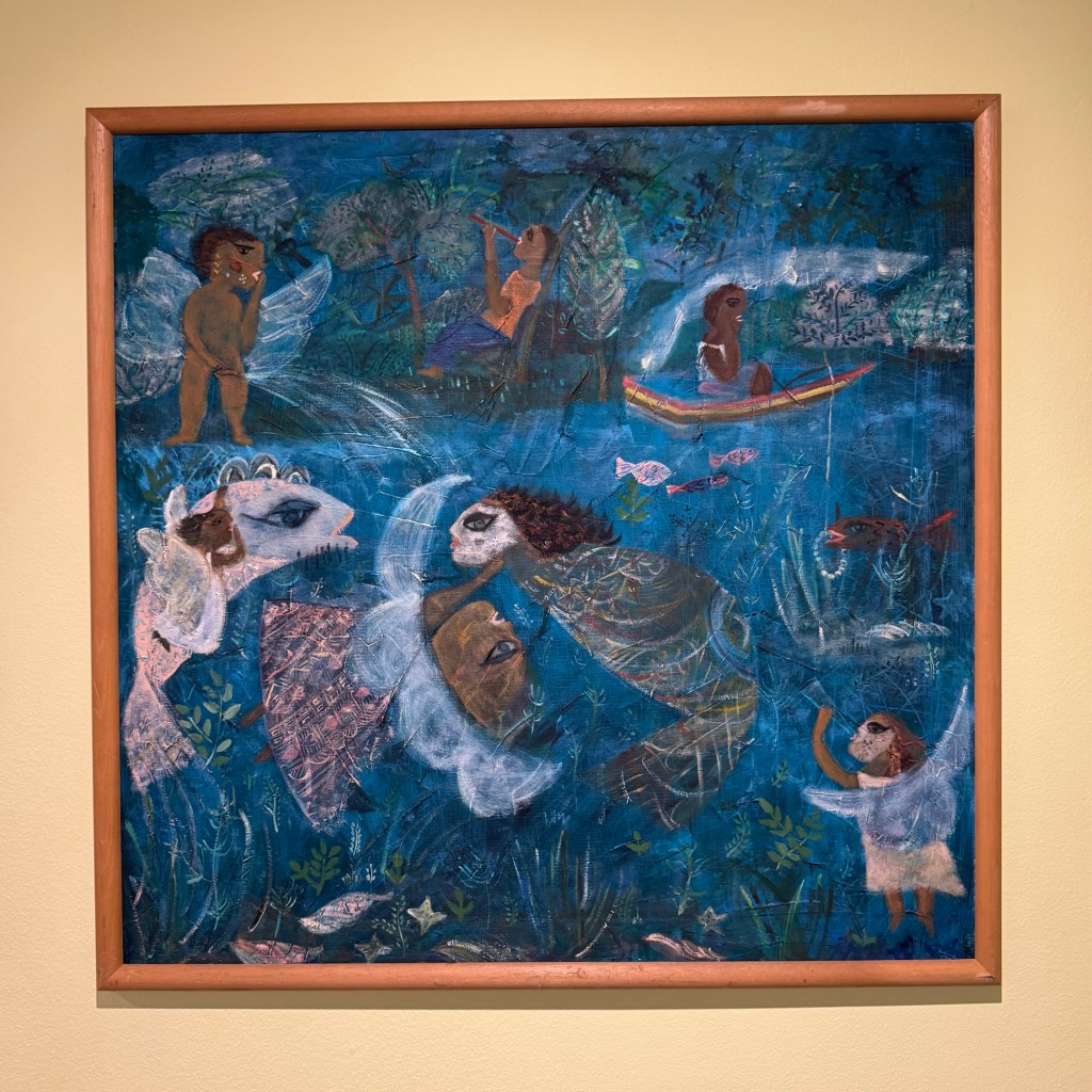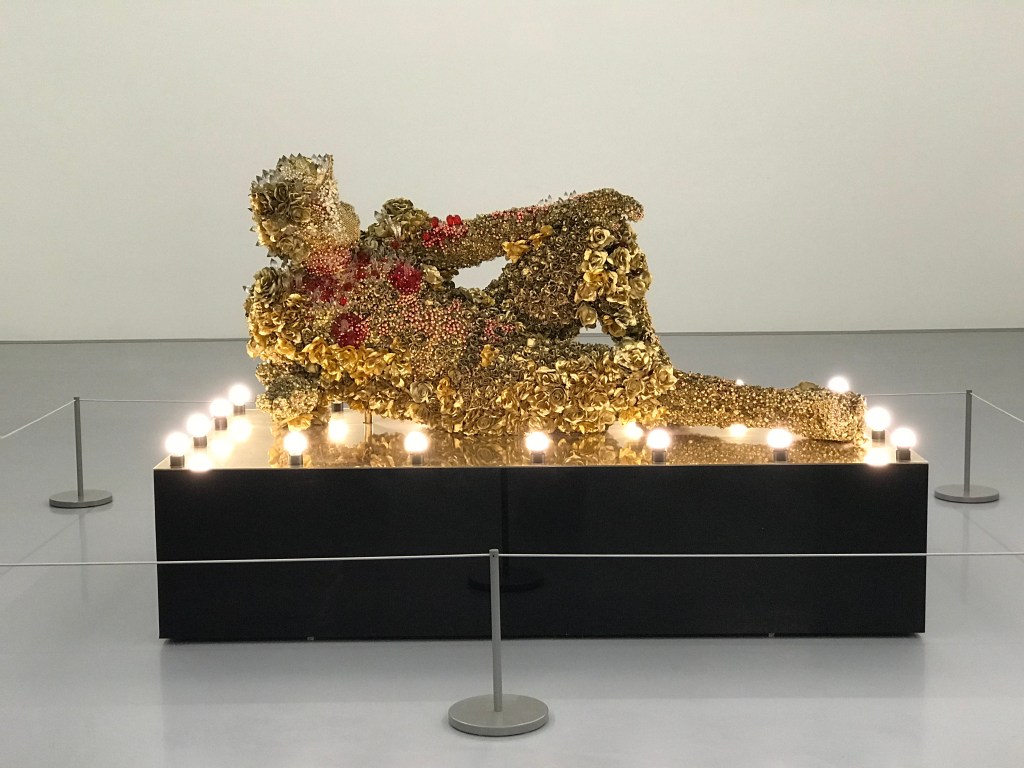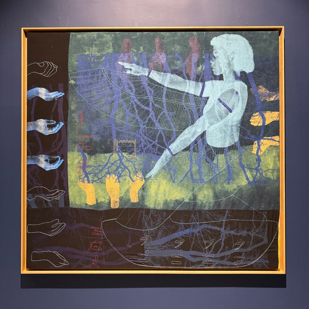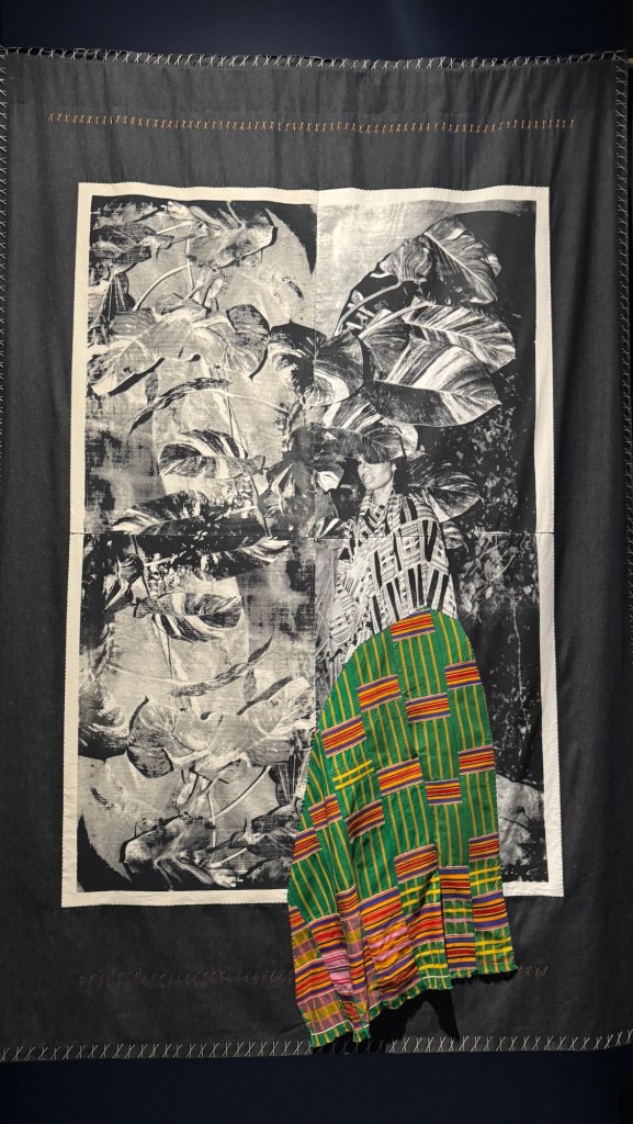 Die Kunstwerke von Opoku verbinden Mode, Textil, Fotografie, Druck und die Installation selbst und dies jeweils aus dem Blickwinkel ihrer Herkunft und ihrer Identität. Total spannend. In all ihren Arbeiten gibt es einen roten Faden, der drei Motive immer wieder präsent werden lässt, nämlich Wasser, Atem und Boden. Ihre persönlichen Erfahrungen verknüpft Opoku mit gesellschaftlichen Fragen. Der Titel der Ausstellung stammt übrigens aus dem altägyptischen Totenbuch: Wir gehen weiter in den Fußstapfen des Sonnenlichts. Na dann …