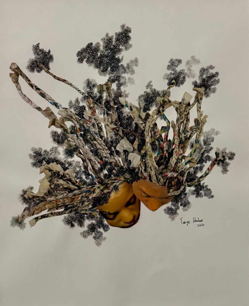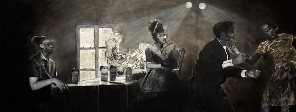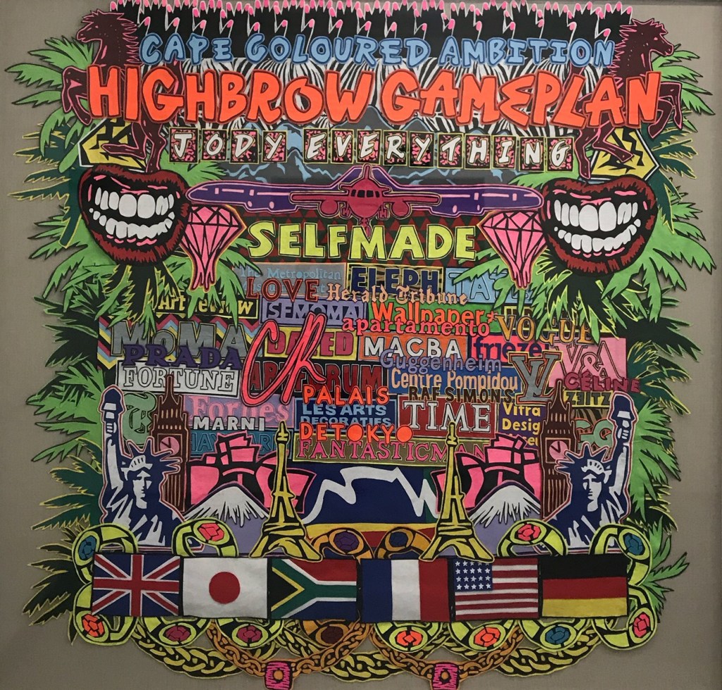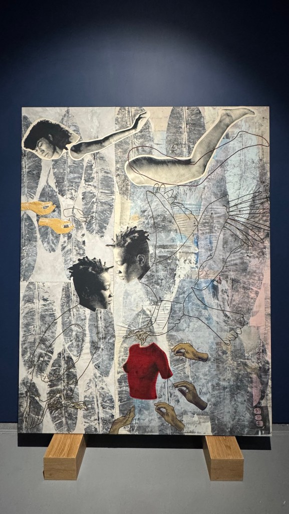 Diese Ausstellung ist aus mindestens dreierlei Gründen für mich interessant. Einerseits natürlich wegen der eindrücklichen Kunstwerke. Andererseits aber, weil die Künstlerin Zohra Opoku ghanaische Wurzeln hat, aber in der ehemaligen DDR 1976 geboren und in Altdöbern in der Lausitz/ Ober-Spreewald aufgewachsen ist. Und drittens kommt hinzu, dass die Ausstellung von Beata America kuratiert wurde. Sie ist die Frau der uns gut bekannten Weinmacherin Megan van der Merwe vom Weingut Beau Constantia.