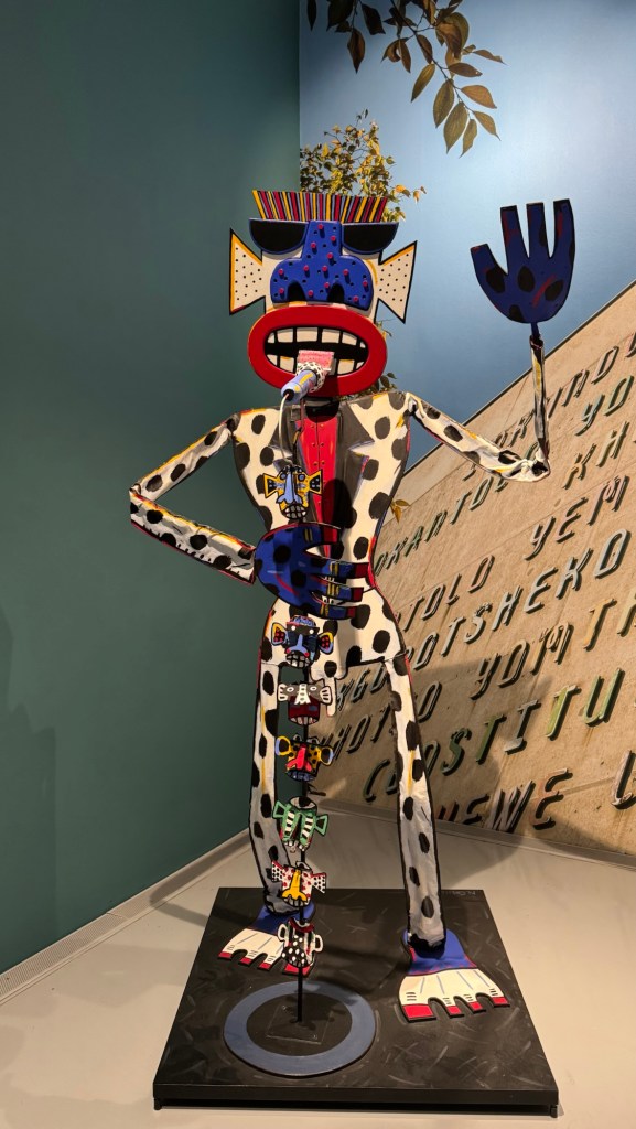 Alles in allem war der Besuch im MOCAA einmal mehr ein Erlebnis. Und wo bekommt man afrikanische Kunst authentischer präsentiert als auf dem Kontinent selbst. Wer also jemals die Gelegenheit hat, in Kapstadt zu sein und zwei bis drei Stunden Zeit für den zügigen Museums-Durchlauf mitbringt, sollte nicht verpassen, hier einzukehren. Aktueller Eintrittspreis: 265 ZAR = rund 14 Euro. Und für den Appetit davor oder danach gibt es das kleine Bistro Ocular im 6. Stock oder für den großen Hunger ein sehr gutes Restaurant im Hotel The Silo im Nachbareingang. Die Rooftop-Bar ist auch empfehlenswert. Da hatten wir 2022 bereits das Vergnügen, die Stadt von oben zu sehen.