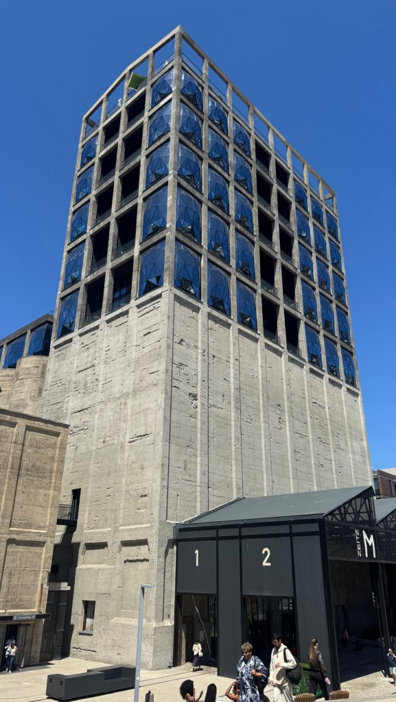 Nach vier Jahren Abstinenz schauten wir uns mal wieder im Zeitz MOCAA um, dem Museum für zeitgenössische Kunst Afrikas (Museum of Contemporary Art Africa). In diesem Jahr gibt es viele thematisch eigene Ausstellungen, die jede ihre eigenen Schwerpunkt hat. Da ich ja bereits viel über das Haus selbst, also das alte Getreidesilo geschrieben habe, will ich euch heute “nur” in die Ausstellungen mitnehmen und ein paar Impressionen zeigen. Über den ersten Besuch in 2019 und den zweiten Abstecher in 2022 könnt ihr im Blog nachlesen. Ihr erfahrt auch etwas über das Gebäude hier unter Zeitz MOCAA & The Silo. Ohne ein paar aktuelle Bilder vom und aus dem 2017 eröffneten MOCAA lasse ich euch natürlich nicht davonkommen, bevor es dann zu den Ausstellungen aus diesem Jahr geht.
