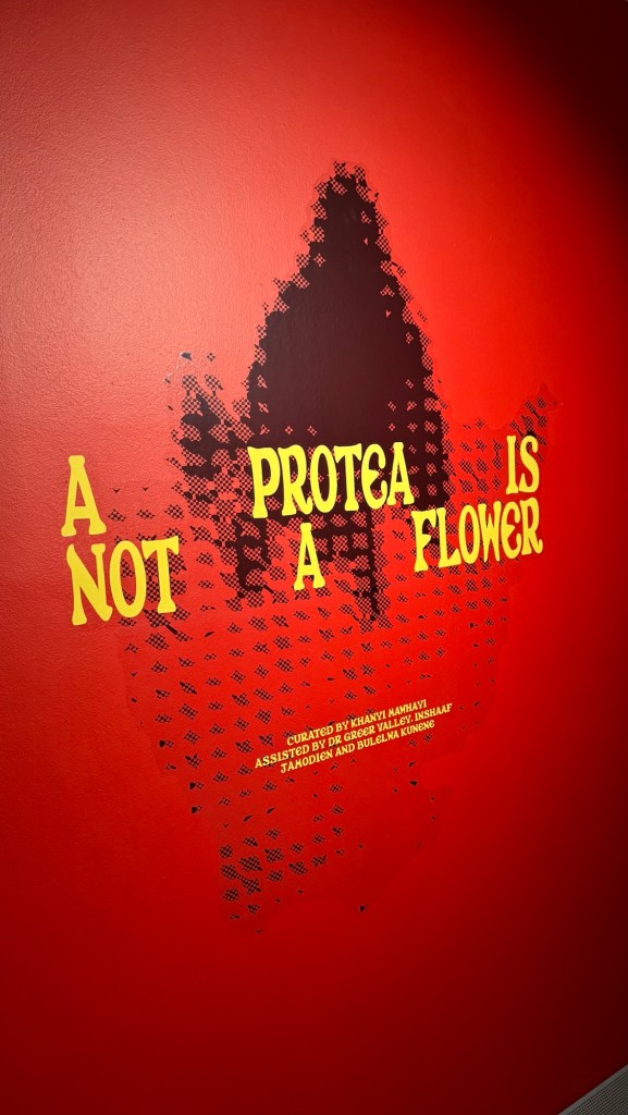 In dieser Ausstellung bringen zwei junge, zeitgenössische Kunstschaffende ihre heutige Sicht der Dinge mit denen früherer Künstler zusammen. Vor allem die Werke von Gérard Sekoto, Bessie Head und Don Mattera stehen dabei im Mittelpunkt ihres Dialogs mit den Kollegen aus früheren Tagen. Der Fokus liegt dabei auf dem Thema Exil, sowohl das Exil weit weg vom eigenen Heimatland als auch die innere Isolation. Die Beziehung südafrikanischer Künstler zu Europa als auch die Erfahrungen von Kolonialismus, Apartheid, Migration und Heimat werden miteinander in Verbindung gebracht. Die Protea als Nationalblume Südafrikas mit ihrer Widerstandsfähigkeit und der komplexen Verwurzelung dient dabei in jeder Beziehung als Metapher zu den einzelnen Werken und Installationen. Ein paar Eindrücke aus dieser Ausstellung seht ihr hier: