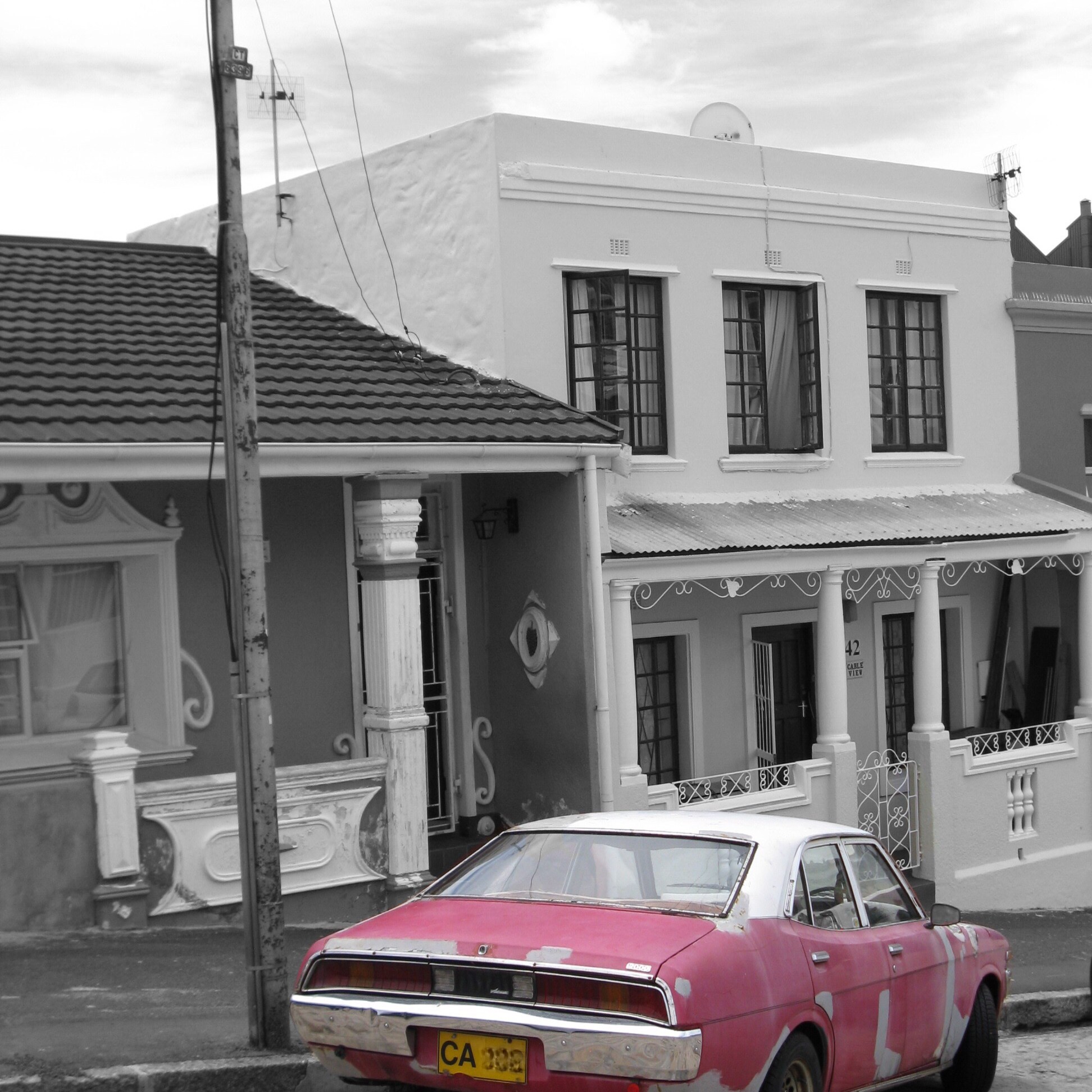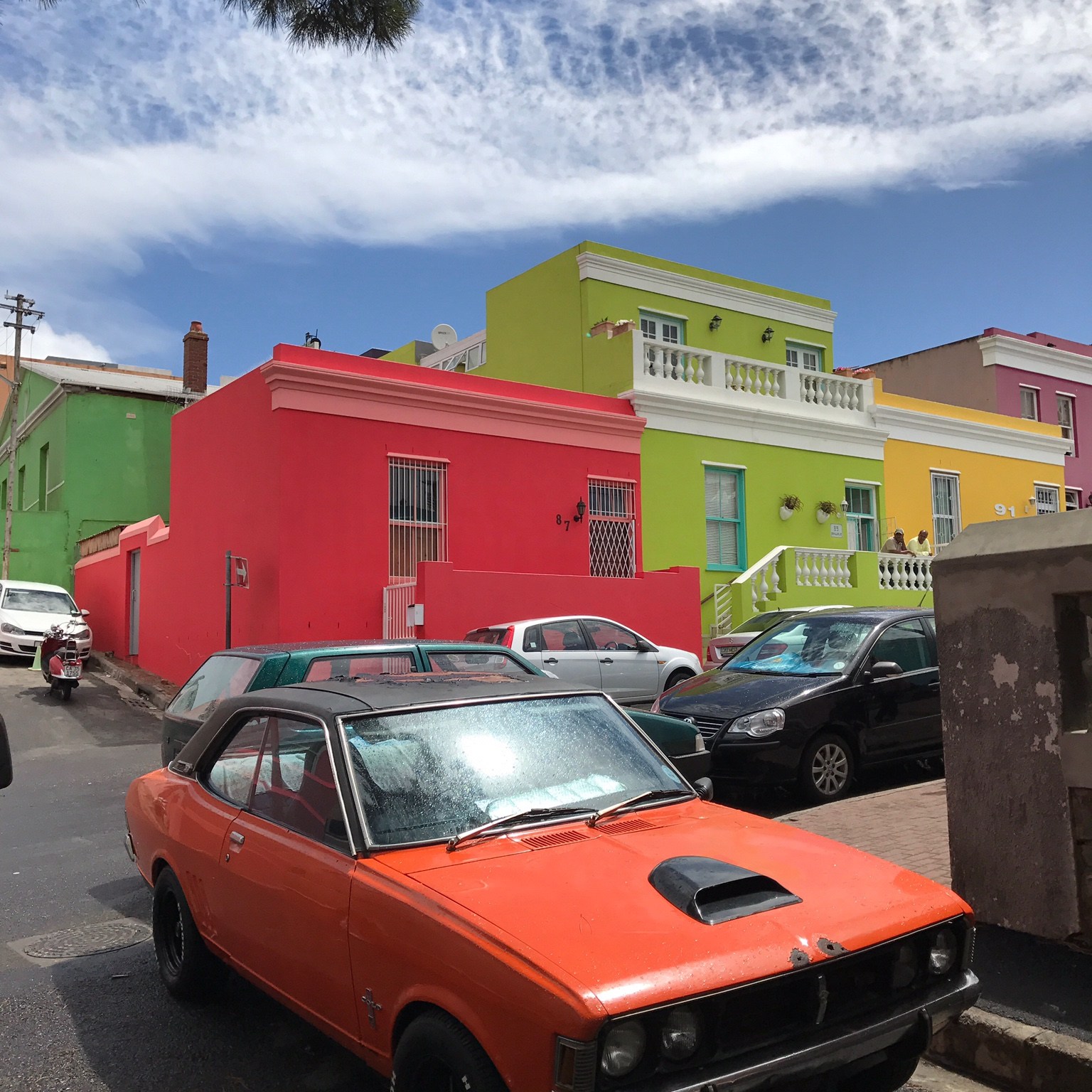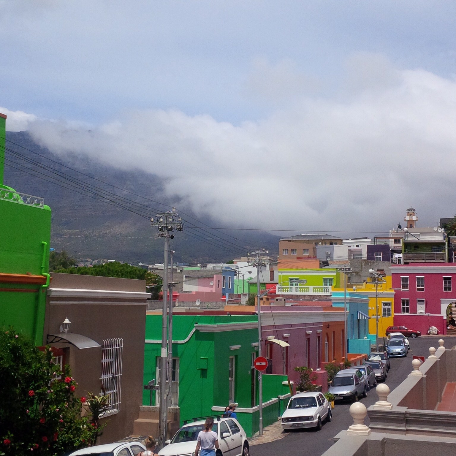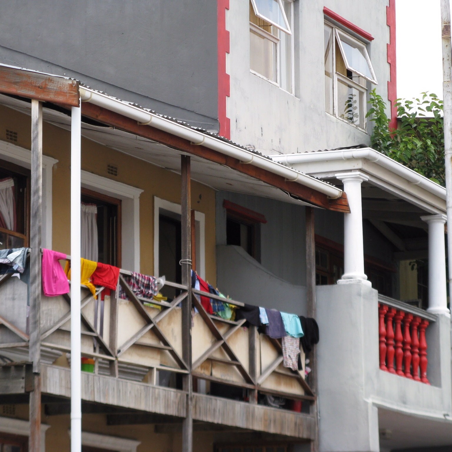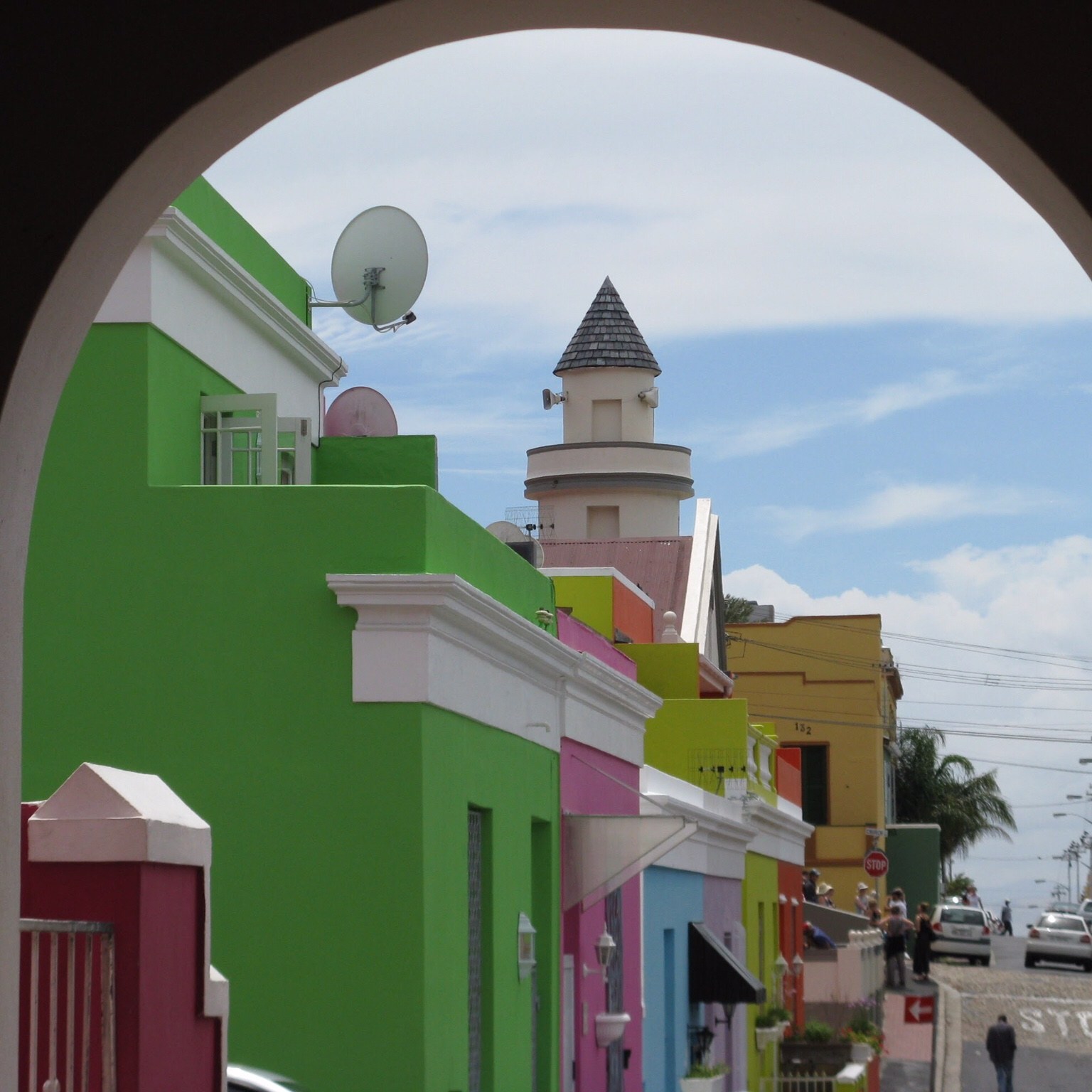 Über die Buitengracht Street gelangt man an der Dorp Street vorbei zur Leuuwen Street, die parallel zur Wale Street verläuft. Hier sieht die farbenfrohe Welt schon ein bisschen verändert aus. An der Ecke Buitengracht/ Leuuwen Street steht das Dutch Manor Hotel von 1812, das man vielleicht schon auf der Stadtrundfahrt erblickt hat. An der Leuuwen Street liegen im Wesentlichen Wohnhäuser, die mal mehr und mal weniger in gutem Zustand gehalten sind. Hier merkt man, dass Bo-Kaap nicht nur ein Vorzeige-Quartier für Touristen ist, sondern tatsächlich die kap-malaiische Bevölkerung ihr zu Hause hat. Kinder spielen auf der Straße, ältere Menschen treffen sich vor den Häusern, frisch gewaschene Wäsche hängt auf den Balkonen – mindestens so bunt wie die Farben der Hauswände.