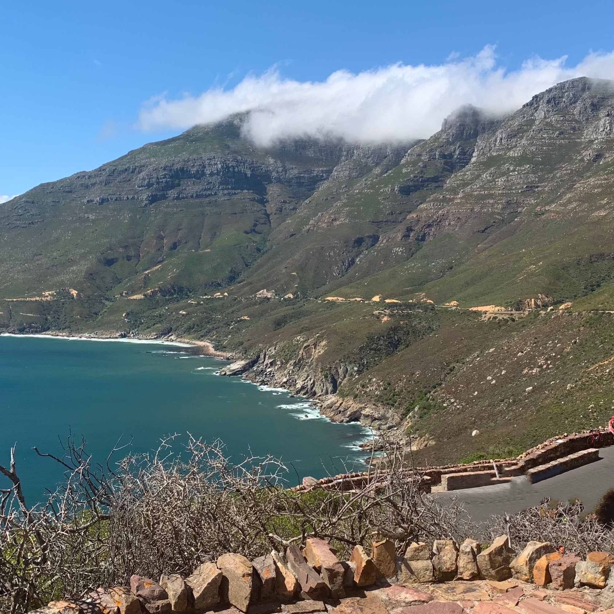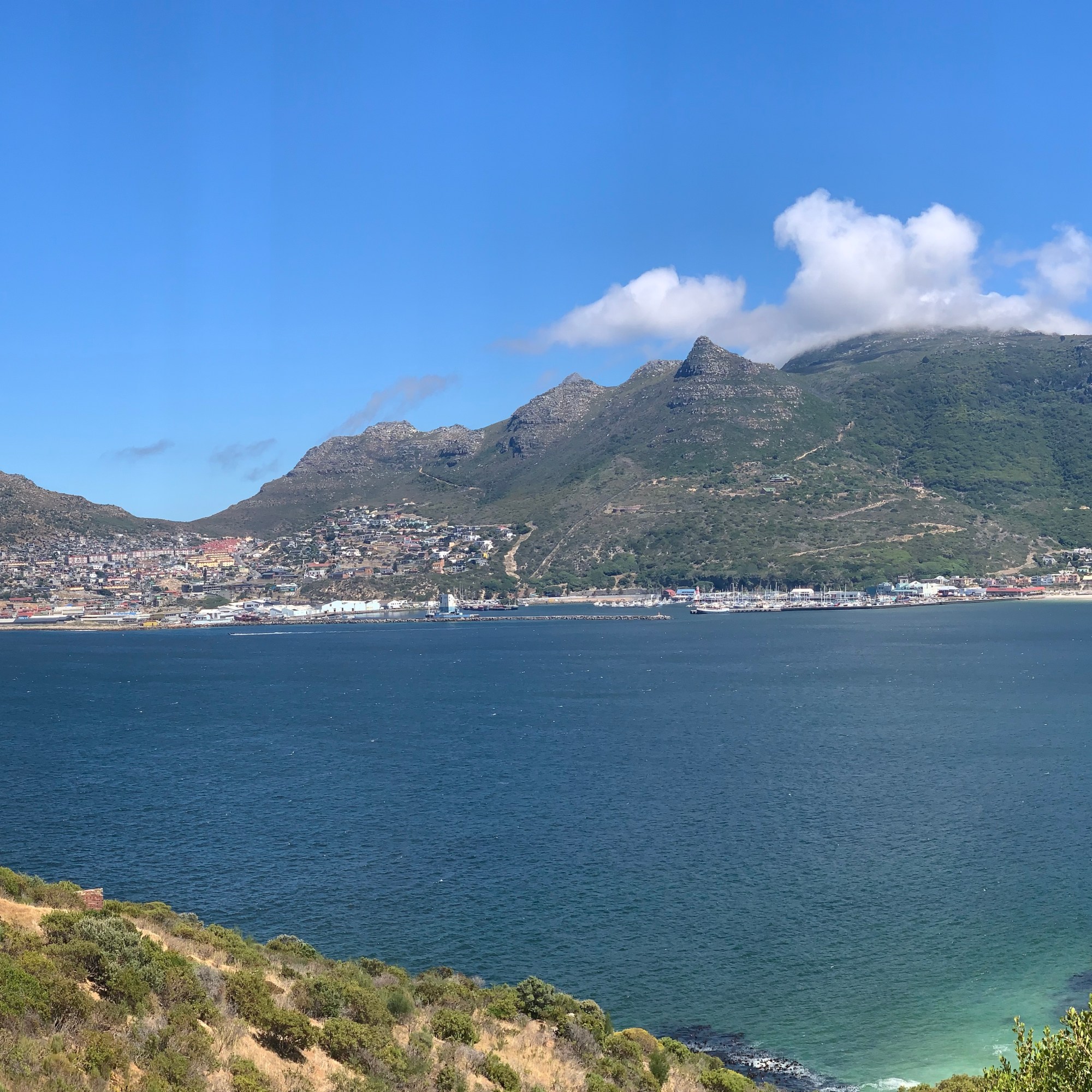 Seit 100 Jahren existiert diese ikonische Straße hinauf zum Chapman’s Peak in 160 m Höhe über dem Atlantik. Über insgesamt fast 10 km führt die kurvenreiche Strecke vorbei an mit Netzen abgesicherten Felsformationen und durch einen Tunnel bis zum kleinen Örtchen Noordkoek. An der Straße gibt es zahlreiche Parkplätze, von denen aus man einen fantastischen Blick über die Bucht von Hout Bay hat. Noch vor der Mautstation gelingt in jedem Fall ein Foto vom „The Sentinel“, dem gegenüberliegenden Berg auf der Halbinsel am Hout Bay Harbour.