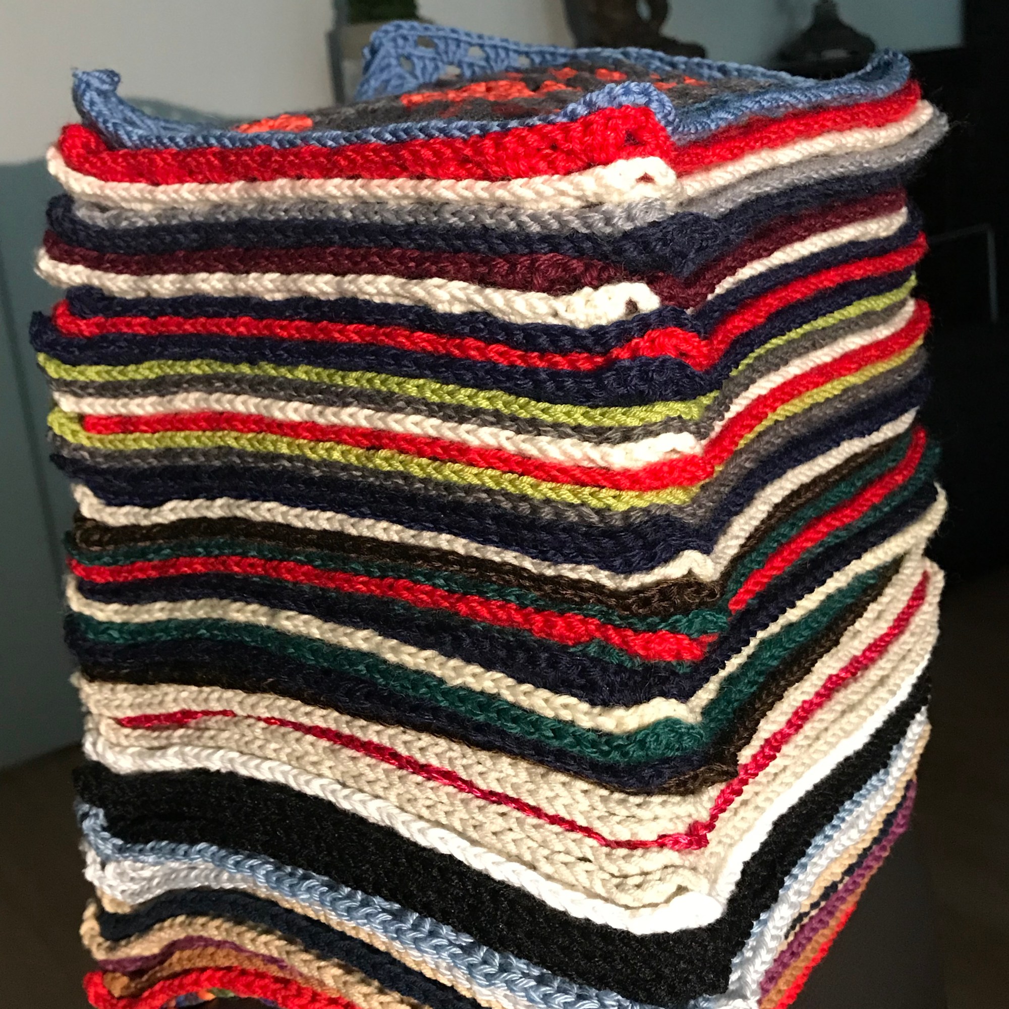 Und da kommen wir und mittlerweile weltweit hundert aktive Stricker*innen und Häkler*innen ins Spiel, die für Baby-Nashörner und andere Waisen-Tiere bunte Wolldecken anfertigen. Denn nicht nur die Wärme empfinden die Tiere als wohltuend, sondern sie erfreuen sich auch an den bunten Farben der Wolldecken, wie man herausgefunden hat. Meine Wolldecken sind übrigens alle aus Wollresten entstanden, die aus dem eigenen Wolle-Schrank stammen oder mir von Freundinnen geschenkt wurden.