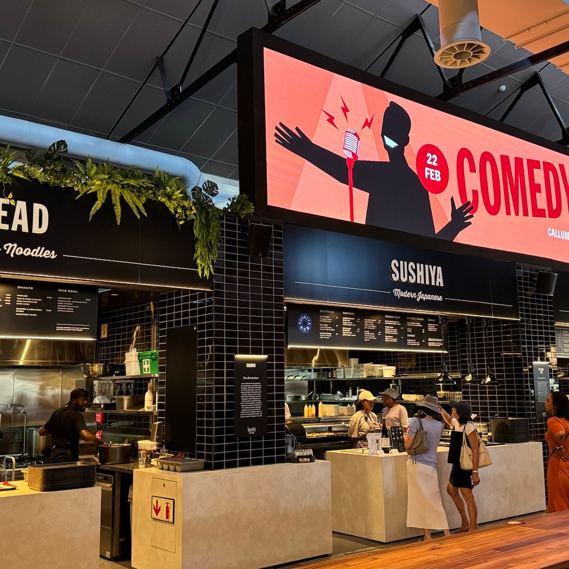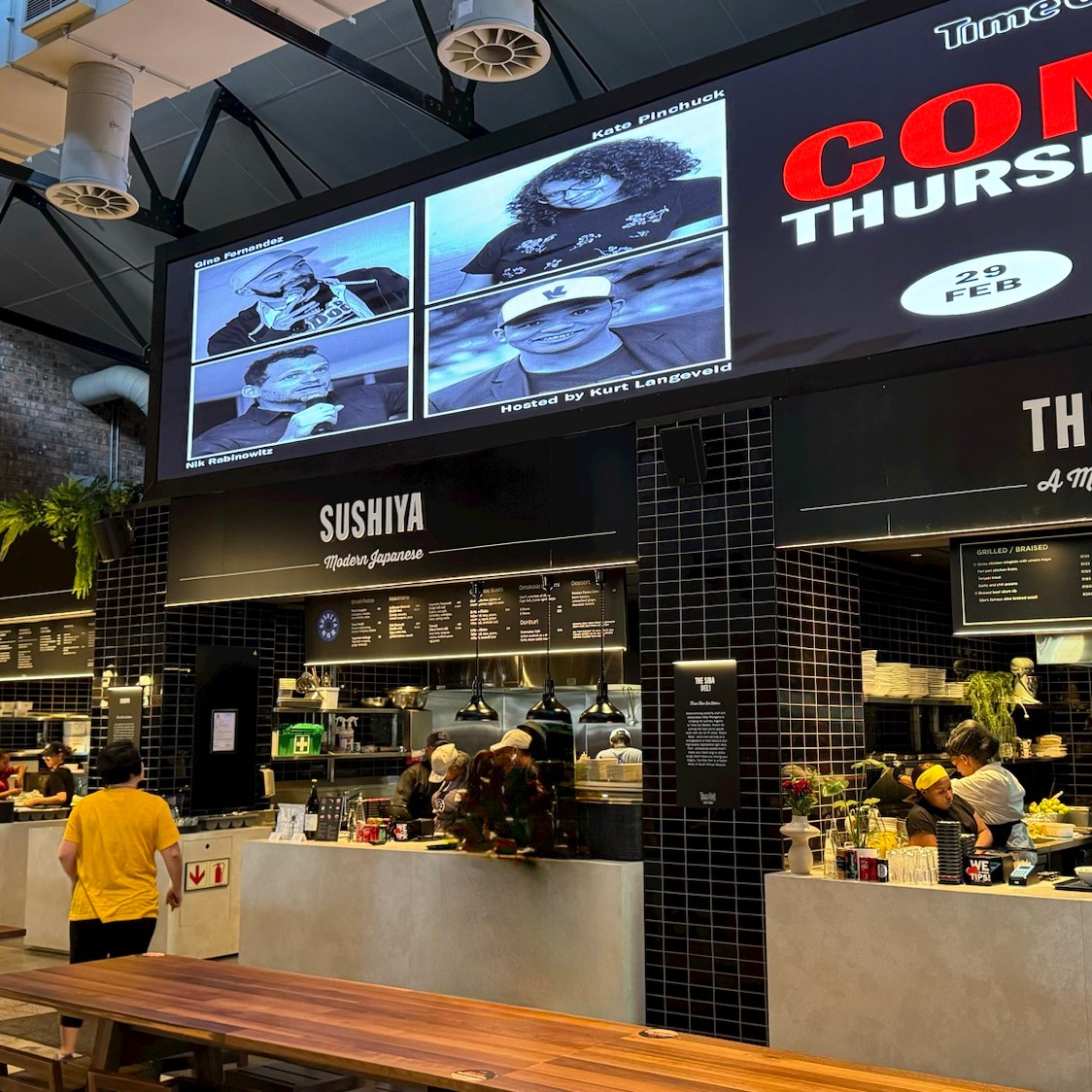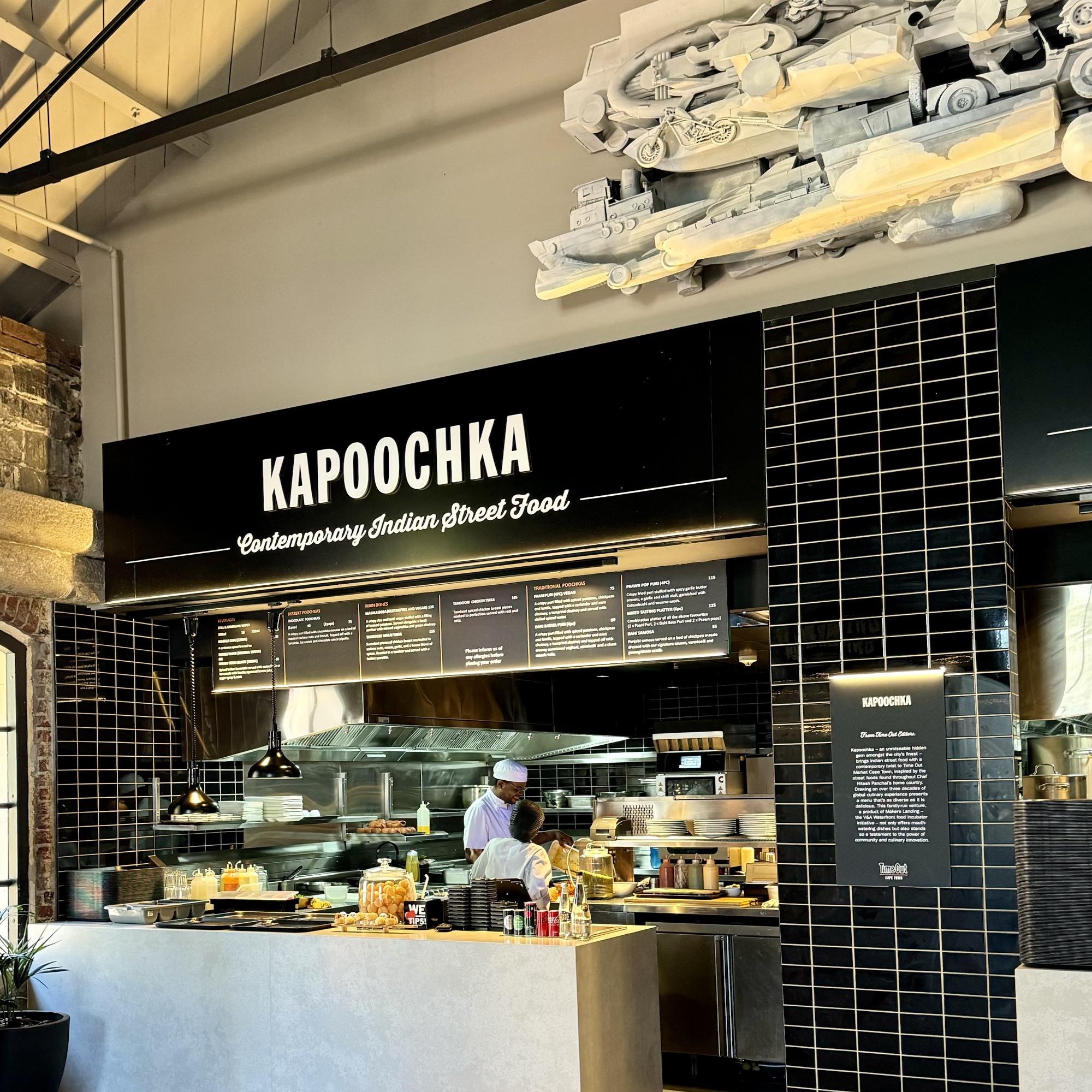Nun hat im November 2023 eine neue Erlebnisgastronomie namens Time Out Market mit 13 verschiedenen Küchen und einigen Bars ihre Pforten dort geöffnet. Das Essen wird bei dem jeweiligen Tresen bestellt, man bekommt einen kleinen Alarmbutton mit, der sich meldet, wenn das Menü bereitet ist. In der Zwischenzeit kann man sich einen Tisch zum essen suchen und auch noch ein Getränk an einer der Bars kaufen. Wenn der Alarmbutton dann brummt, holt man sich sein essen beim Bestelltresen ab. Das Essen ist sicher Geschmacksache, die gehobene Kantinenatmosphäre passt meiner Ansicht nach aber nicht zu der kreativen Restaurantkultur, für Südafrika ansonsten bekannten ist. Für einen schnellen Imbiss reicht der Time Out Market aber allemal.