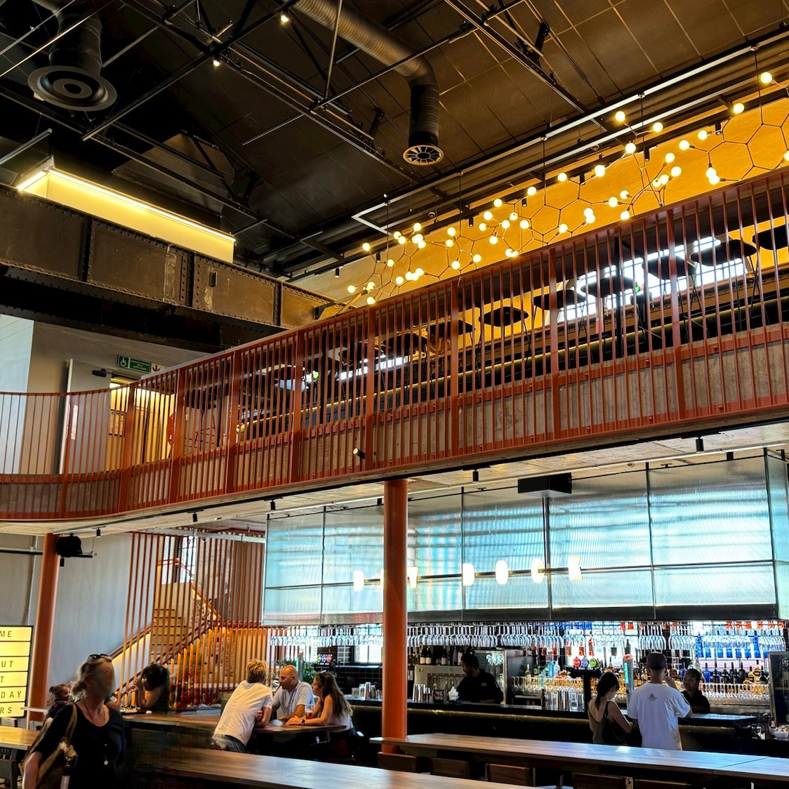 Direkt am Platz lag bis Januar 2023 ein kleiner Genusstempel, der V&A „Market on the Wharf“. Hier im ehemaligen Kraftwerk der Werft lohnte sich ein Besuch für den kleinen Hunger zwischendurch, und zu trinken gab es auch genug – ein Ort mit gemütlicher Atmosphäre.
